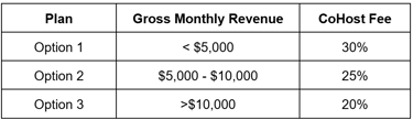 The monthly fee is based on gross revenue from the short term rental property, excluding cleaning fees: